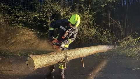 Na Gorenjskem še naprej močno piha, veter pa je povzročil ogromno škode. Največ intervencij je bilo doslej v občinah Radovljica in Tržič. Veter odkriva strehe, podira drevesa in močno ovira