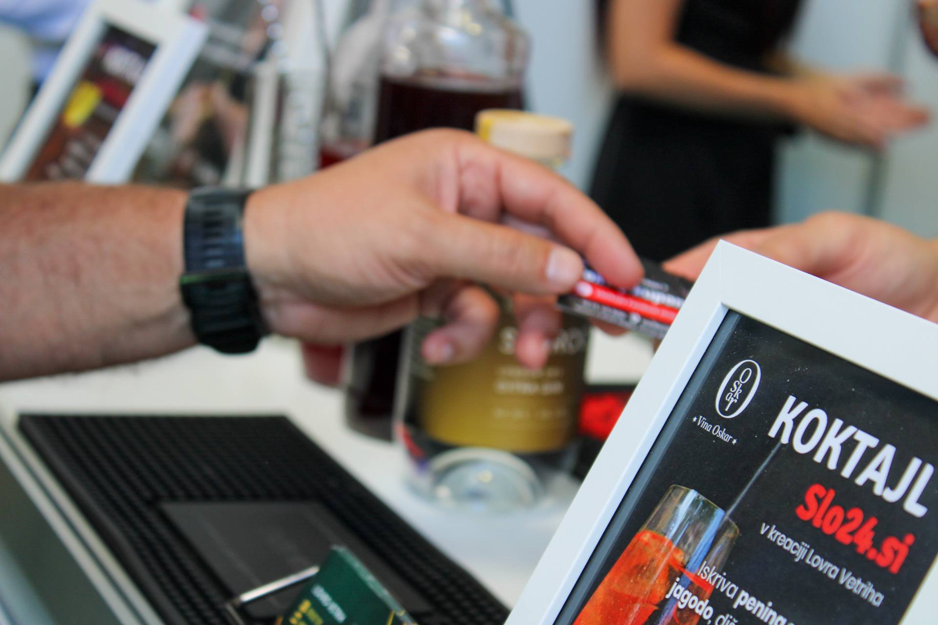 Spretno je vihtel šejker, ledene kocke in barvne sestavine, obiskovalci pa so dogajanje opisovali kot »vrhunsko, na nivoju«. Radovedno so spraševali o ginih, peninah in drobnih skrivnostih koktajl ustvarjanja. Med njimi so se znašli tudi številni znani obrazi, šov pa si je ogledal celo minister za gospodarstvo Matjaž Han.