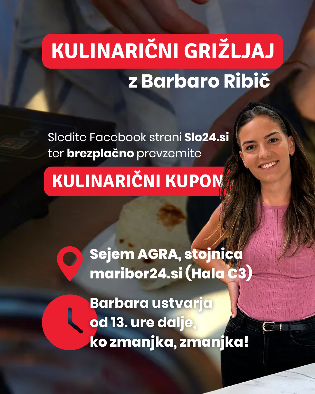 Kako do kulinaričnega grižljaja ter koktajla? Oglasite se na našem razstavnem prostoru ob vhodu v halo C3, všečkajte našo Facebook stran ter nas pocukajte za rokav za poseben kuponček, ki vas bo v nedeljo popeljal do kulinaričnega grižljaja oziroma v torek do koktajla!